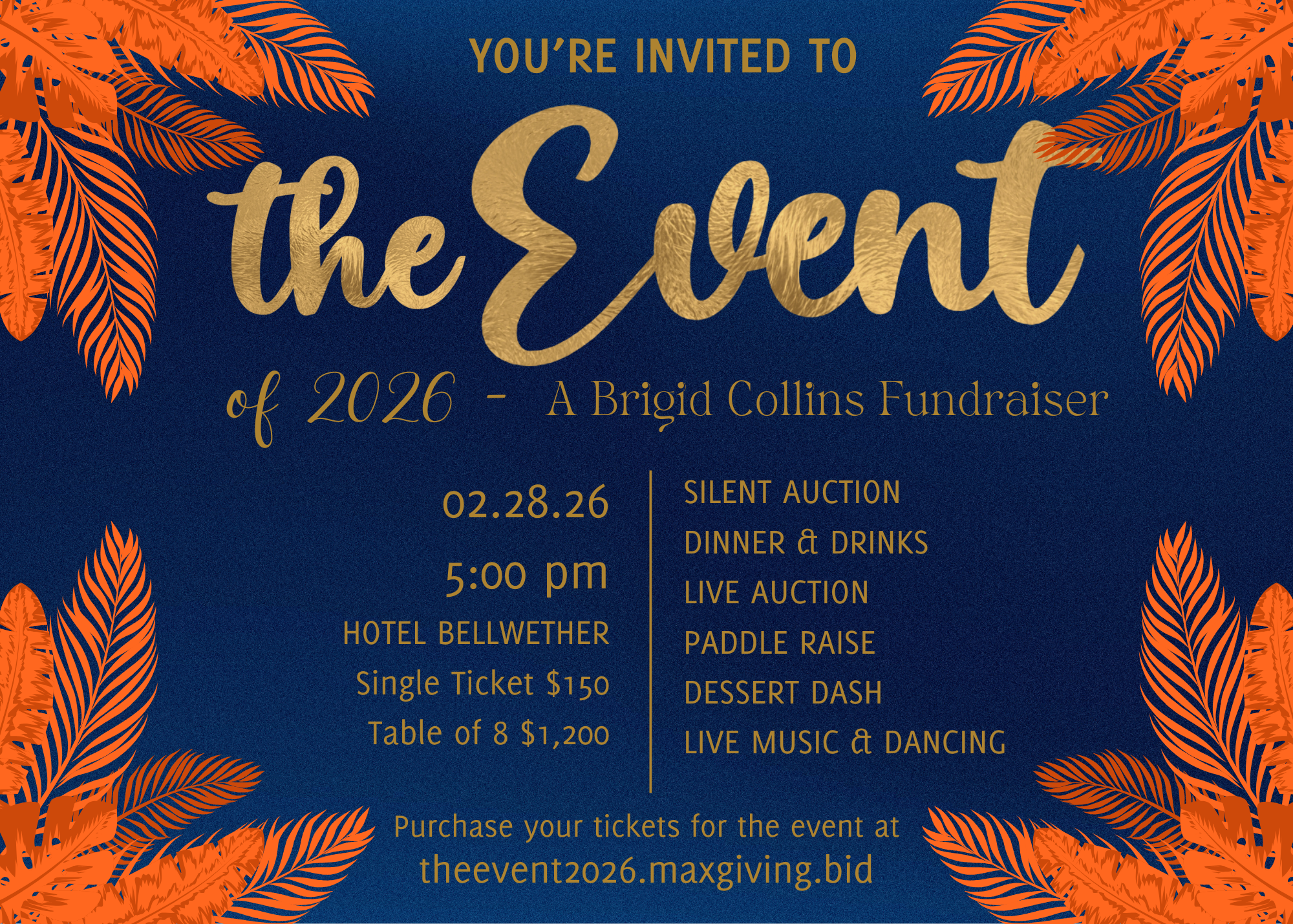 - Live and silent auction items or packages – email Kait at kdavis@brigidcollins.org